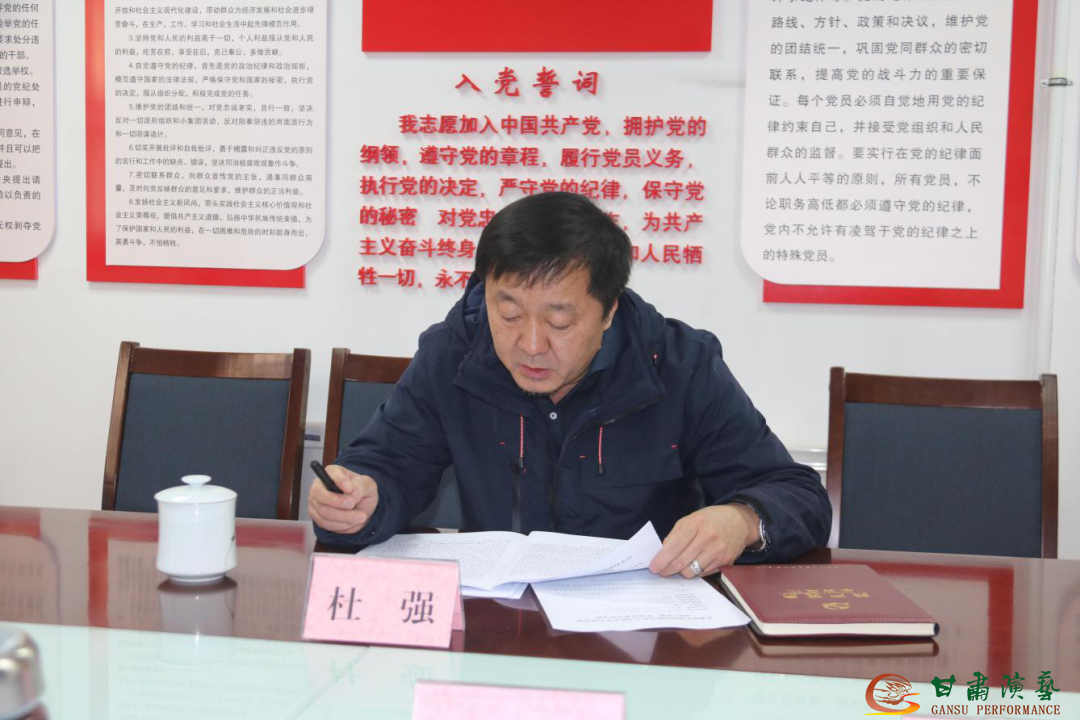 2021年3月11日上午,甘肅演藝集團(tuán)舞美中心黨支部召開2021年第一季度黨課宣講暨黨史學(xué)習(xí)教育研討會,支部全體黨員參加會議,積極分子列席會議,會議由黨支部副書記杜強(qiáng)同志主持。