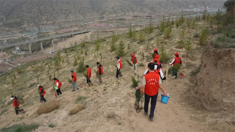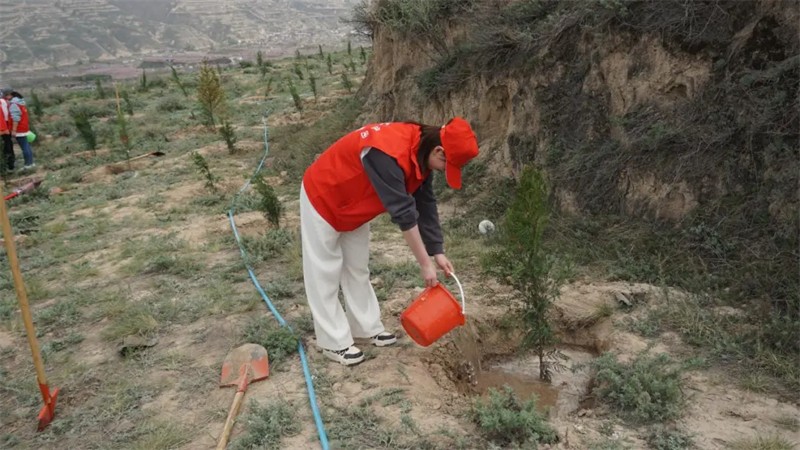 活動(dòng)現(xiàn)場(chǎng),身穿“紅馬甲”的團(tuán)員青年和青年志愿者們手持鐵鍬、揚(yáng)起青春的笑臉,積極參與植樹(shù)工作。大家一起揮锨鏟土、填苗入坑、培實(shí)新土、提桶澆水,齊心協(xié)力栽下一棵棵樹(shù)苗。在團(tuán)員青年和青年志愿者們一派熱火朝天的繁忙景象下,一株株樹(shù)苗排列整齊、迎風(fēng)挺立在山坡上,為初春的蘭州大地增添了無(wú)限生機(jī)。