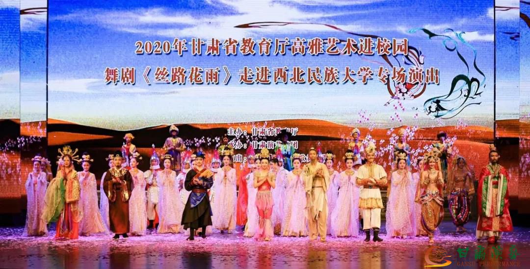 11月21日,由甘肅省教育廳主辦,甘肅演藝集團承辦2020年“甘肅省教育廳高雅藝術(shù)進校園”活動——中國經(jīng)典舞劇《絲路花雨》來到了西北民族大學,甘肅演藝集團歌舞劇院的演員們帶領(lǐng)現(xiàn)場師生走進傳統(tǒng)經(jīng)典,品味多彩絲路。