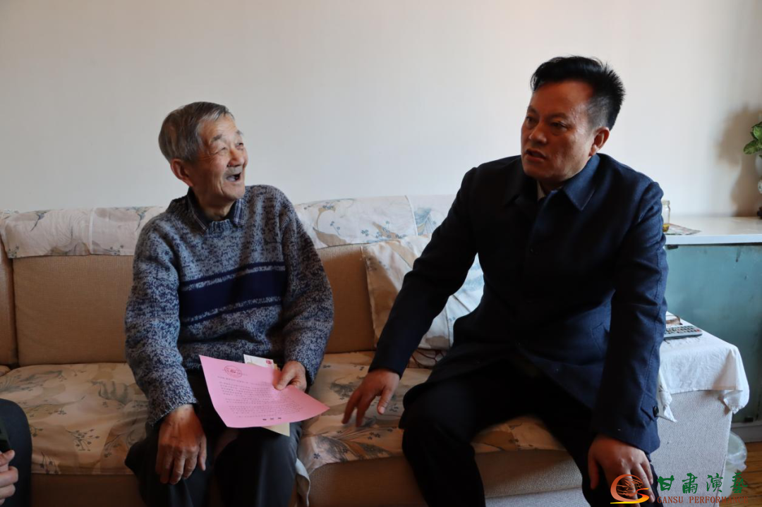 甘肅演藝集團(tuán)黨委副書(shū)記、監(jiān)事會(huì)主席、藝術(shù)總監(jiān)龍富國(guó),人力資源部部長(zhǎng)竇紅印及甘肅演藝集團(tuán)話(huà)劇院(甘肅兒童劇院)領(lǐng)導(dǎo)班子一行先后來(lái)到離休老黨員、老干部、國(guó)家一級(jí)編劇87歲高齡的胡耀華同志和離休老干部、老藝術(shù)家91歲高齡的張宗甫同志家中進(jìn)行走訪(fǎng)、看望、慰問(wèn),并為胡耀華、張宗甫,特困老同志孫景平送去了慰問(wèn)信和慰問(wèn)金,表達(dá)了溫馨的問(wèn)候和美好的祝福,衷心地祝愿他們身體健康,新年快樂(lè)!