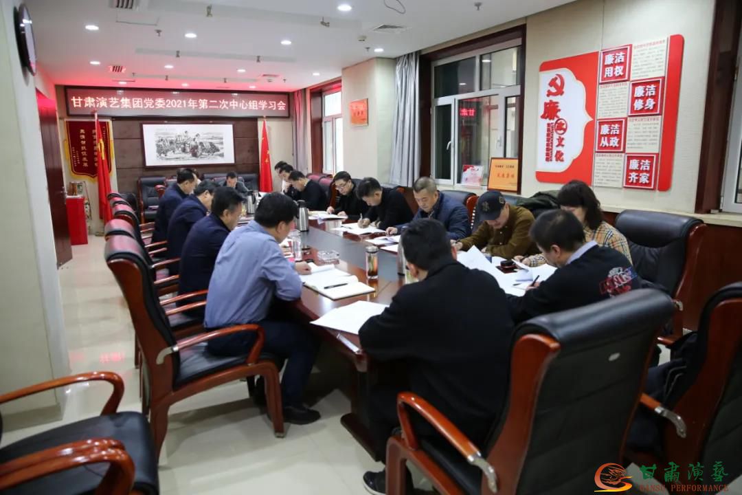 為學(xué)習(xí)貫徹習(xí)近平總書記重要講話精神和十九屆中央紀(jì)委第五次全會(huì)公報(bào),2021年2月4日上午,甘肅演藝集團(tuán)黨委召開(kāi)2021年度第二次中心組學(xué)習(xí)會(huì),會(huì)議由集團(tuán)黨委書記、董事長(zhǎng)陳其銀主持。全體黨委班子成員、集團(tuán)各部室負(fù)責(zé)人、直屬各單位主要負(fù)責(zé)人參會(huì)。