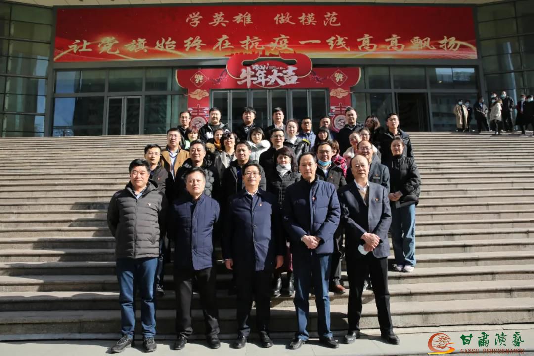 為深入學(xué)習(xí)貫徹習(xí)近平總書(shū)記在全國(guó)抗擊新冠肺炎疫情表彰大會(huì)上的重要講話精神,積極開(kāi)展“學(xué)習(xí)身邊榜樣”活動(dòng),大力弘揚(yáng)抗疫精神。由甘肅演藝集團(tuán)機(jī)關(guān)黨支部牽頭于2021年2月2日下午在黃河劇院開(kāi)展了“學(xué)英雄·做模范—讓黨旗始終在抗疫一線高高飄揚(yáng)”主題黨日活動(dòng)。主題黨日活動(dòng)由機(jī)關(guān)黨支部副書(shū)記胡慶昭主持,集團(tuán)機(jī)關(guān)黨支部、敦煌藝術(shù)團(tuán)黨總支、話劇院黨總支、秦腔藝術(shù)劇院黨總支、演出公司黨支部、舞美中心黨支部共100余人參加。