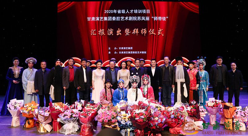 3月1日晚,中共甘肅省委組織部2020省級人才培訓(xùn)項目——甘肅演藝集團秦腔藝術(shù)劇院蘇鳳麗 “師帶徒”項目匯報演出暨收徒儀式在甘肅黃河劇院隆重舉行。甘肅演藝集團黨委書記、董事長陳其銀、黨委副書記、總經(jīng)理劉小承、黨委副書記、監(jiān)事會主席、藝術(shù)總監(jiān)龍富國,甘肅省文化和旅游廳副廳長楊建仁、副廳長萬學(xué)科,甘肅省劇協(xié)副主席石小軍,甘肅日報社副總編周尚業(yè),甘肅省委宣傳部文藝處處長李敏娜、干部處處長肖元,甘肅省文化和旅游廳藝術(shù)處處長張林濤,甘肅省委組織部相關(guān)領(lǐng)導(dǎo)等出席了本次活動。