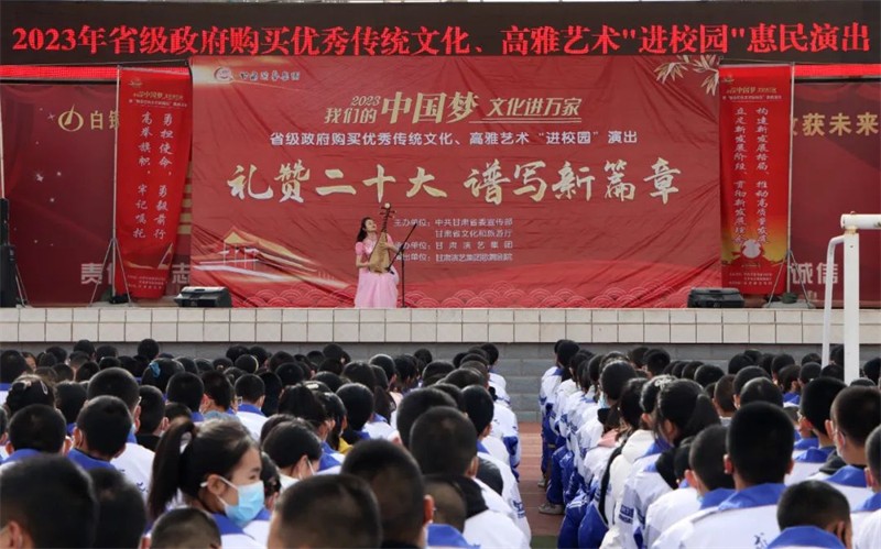 白銀市第十中學(xué)趙老師也激動地說:此次惠民演出活動是深入貫徹落實(shí)黨的二十大精神的具體實(shí)踐,是弘揚(yáng)社會主義核心價(jià)值觀的有力體現(xiàn),演員們不僅僅是把精彩節(jié)目展示給同學(xué)們,更讓同學(xué)們感受了文化藝術(shù)的魅力,激發(fā)了同學(xué)們熱愛祖國、熱愛家鄉(xiāng)的美好情感和弘揚(yáng)中華優(yōu)秀傳統(tǒng)文化的熱情。