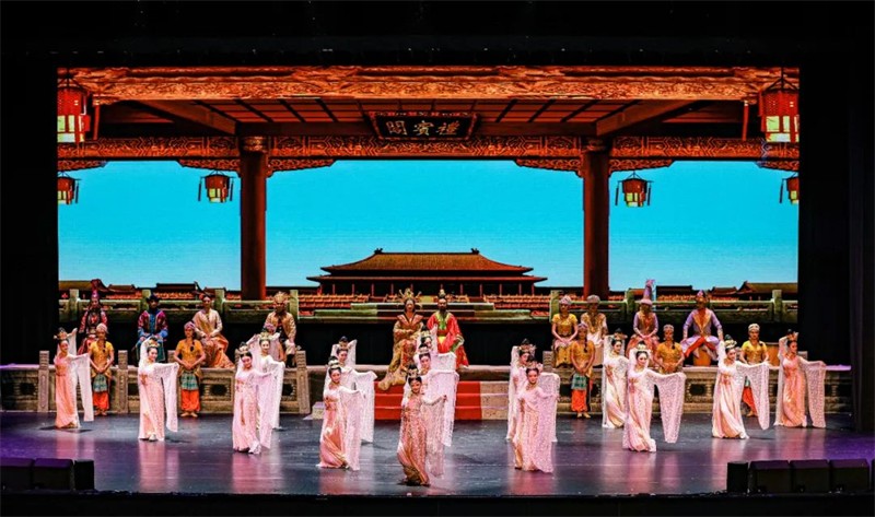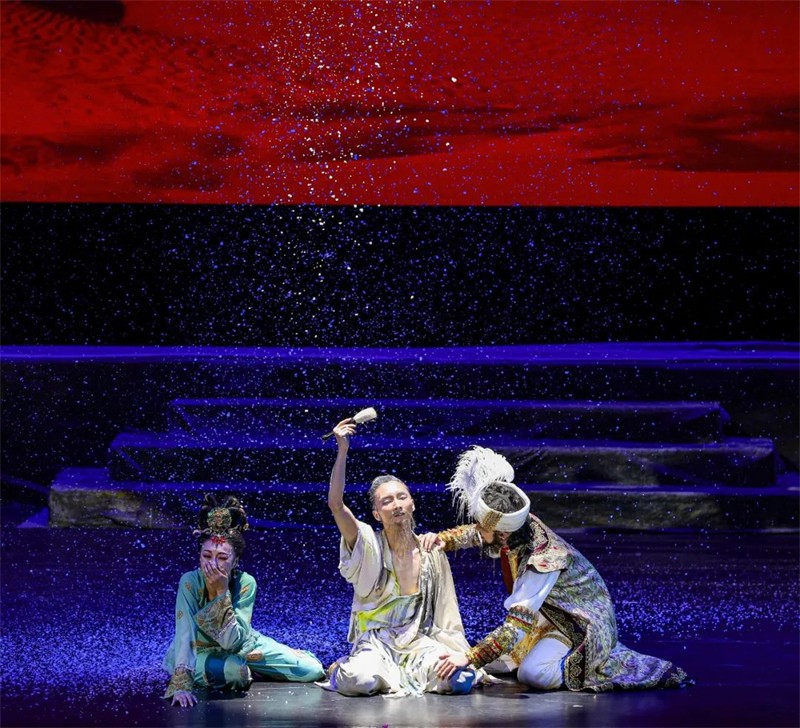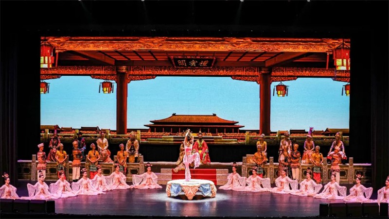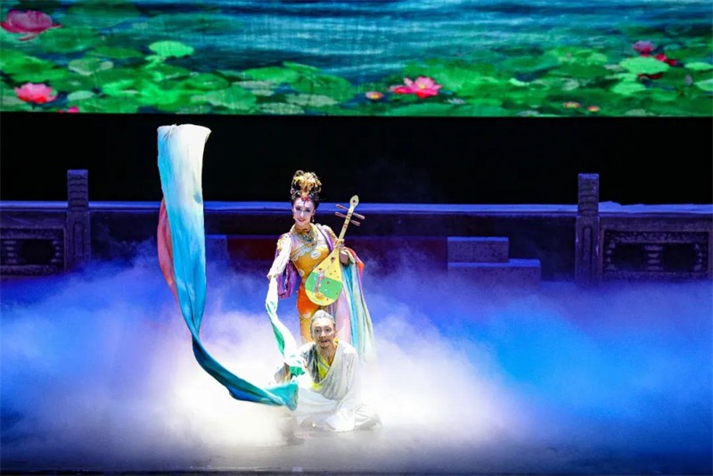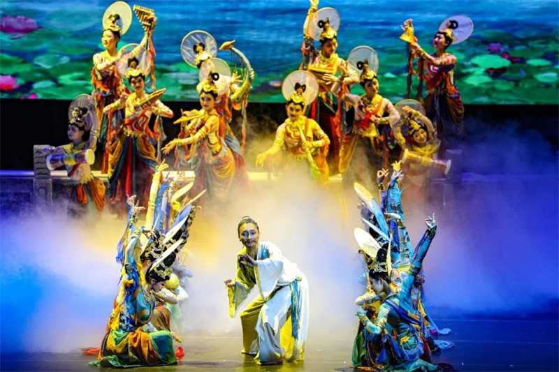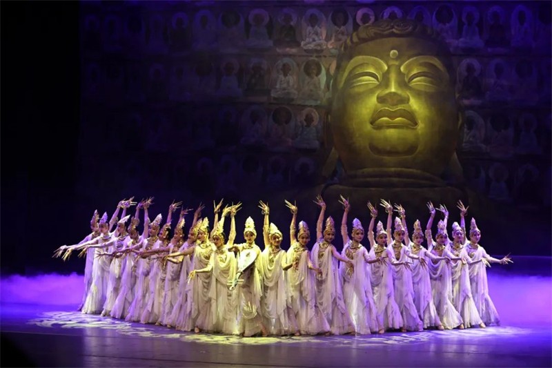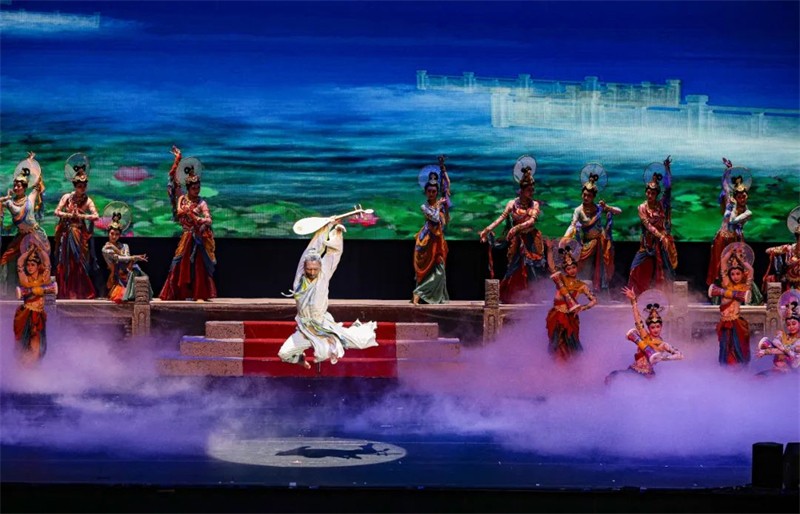 中國(guó)古典舞、印度舞、黑巾舞、波斯馬鈴舞、波斯酒舞、土耳其舞、盤(pán)上舞、新疆舞......當(dāng)晚,被譽(yù)為“活的敦煌壁畫(huà),美的藝術(shù)享受”的舞劇《絲路花雨》融“一帶一路”沿線國(guó)家和地區(qū)民間歌舞于一身,以大氣唯美的布景、絢麗多彩的舞蹈、極富張力的演繹、跌宕起伏的情節(jié),讓現(xiàn)場(chǎng)近2000多名觀眾穿越時(shí)空,仿佛走進(jìn)古絲綢之路的歷史畫(huà)卷中,如癡如醉?!扒钟^音”“反彈琵琶”“蓮花童子舞”“霓裳羽衣舞”......出自100多幅敦煌壁畫(huà)中的敦煌舞姿,婀娜蹁躚、獨(dú)特唯美、如夢(mèng)如幻,令人拍案叫絕。