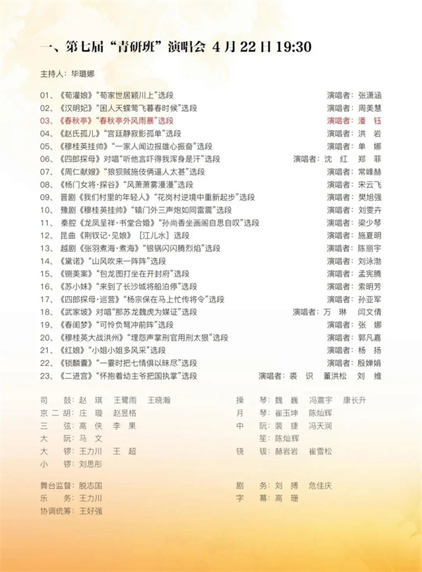 4月22-26日,第七屆中國京劇優(yōu)秀青年演員研究生班教學(xué)匯報演出將在北京梅蘭芳大劇院上演。22日晚,我團(tuán)學(xué)員潘鈺將為大家送上《春秋亭》選段“春秋亭外風(fēng)雨暴”,歡迎大家蒞臨現(xiàn)場觀看。