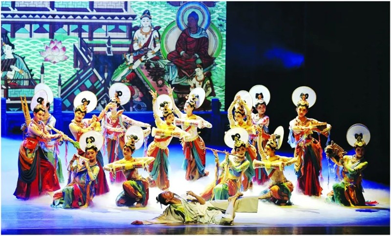 2023年春節(jié)期間,中國(guó)民族舞劇《絲路花雨》應(yīng)邀在國(guó)家大劇院連演5場(chǎng),甘肅演藝集團(tuán)的藝術(shù)工作者用飽滿(mǎn)的熱情、精湛的演技,為首都觀眾獻(xiàn)上了一道春節(jié)文化盛宴。瑰麗的絲綢之路盛景和優(yōu)美的敦煌壁畫(huà)舞姿,在京掀起了濃濃的敦煌風(fēng)、甘肅韻,隨后該劇又在甘肅黃河劇院和甘肅大劇院連演6場(chǎng),演出一票難求、場(chǎng)場(chǎng)爆滿(mǎn),獲得觀眾熱烈追捧。