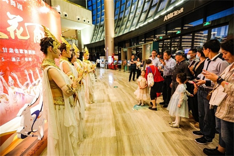絲路花雨舞動(dòng)人間天堂,如意甘肅閃耀之江大地。5月14日晚,在杭州西湖之畔的蝴蝶劇場,由甘肅省文化和旅游廳主辦,甘肅演藝集團(tuán)承辦,甘肅省歌舞劇院演出的經(jīng)典舞劇《絲路花雨》文化交流演出精彩上演。劇場內(nèi)曼妙的舞姿,悠揚(yáng)的鼓樂,動(dòng)人