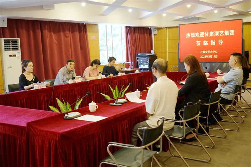 5月11日,甘肅演藝集團黨委委員、副總經(jīng)理、藝術(shù)總監(jiān)劉寧,甘肅演藝集團創(chuàng)作策劃部部長張虹,甘肅演藝集團敦煌藝術(shù)團團長許蕊,甘肅演藝集團創(chuàng)作策劃部主辦周丹迪等一行到紅線女藝術(shù)中心參觀調(diào)研。