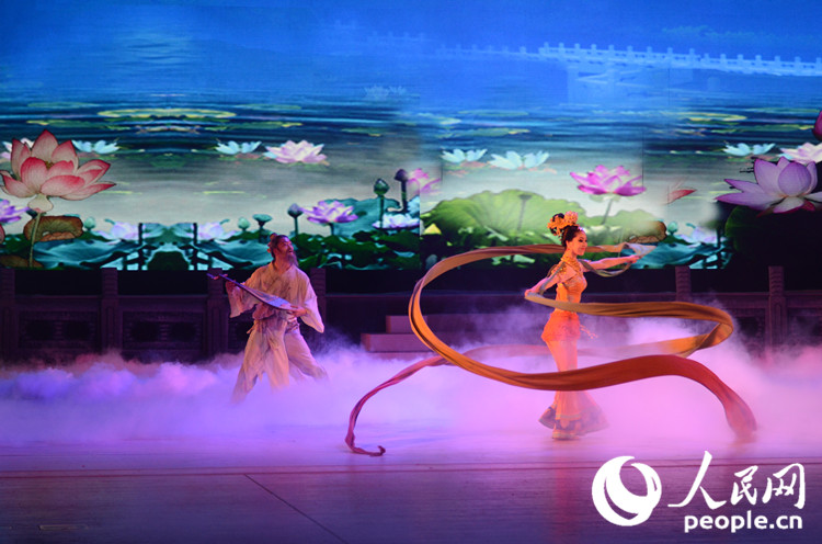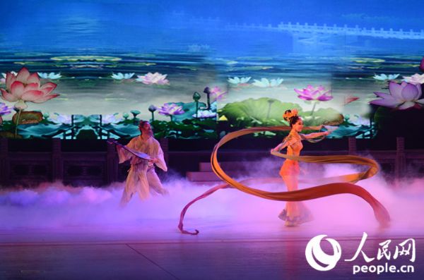 《絲路花雨》通過多變的舞美場景、豐富的舞蹈造型、唯美的舞姿講述了一個(gè)發(fā)生在絲綢之路上的凄美動(dòng)人故事。它不僅融合了中國古典舞、敦煌舞、印度舞、黑巾舞、波斯馬鈴舞等多種形式,還創(chuàng)新性地融入了很多現(xiàn)代舞元素,源于敦煌壁畫的飛天造型、反彈琵琶的優(yōu)美舞姿、變幻無窮的千手觀音場景,讓無論是偏愛傳統(tǒng)文化還是時(shí)尚文化的觀眾都沉浸其中。演出結(jié)束后,全場觀眾起立向演員報(bào)以熱烈的掌聲。