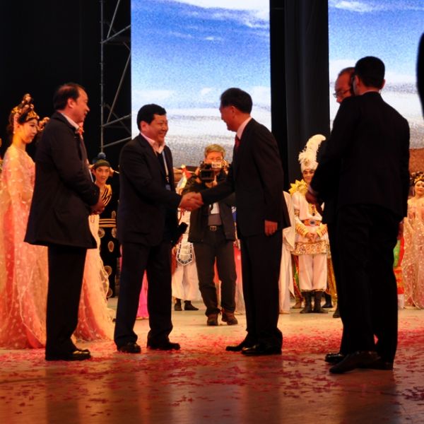 1月23日,由甘肅演藝集團(tuán)總經(jīng)理張明、副總經(jīng)理陸金龍帶隊(duì)的87位甘肅省歌舞劇院的藝術(shù)家們赴韓國首爾KBS劇場參加了“中國旅游年”的開幕儀式。開幕式上,87位藝術(shù)家們?yōu)橛^眾獻(xiàn)上了大型舞劇《絲路花雨》,受到了廣泛的好評(píng)和喜愛。