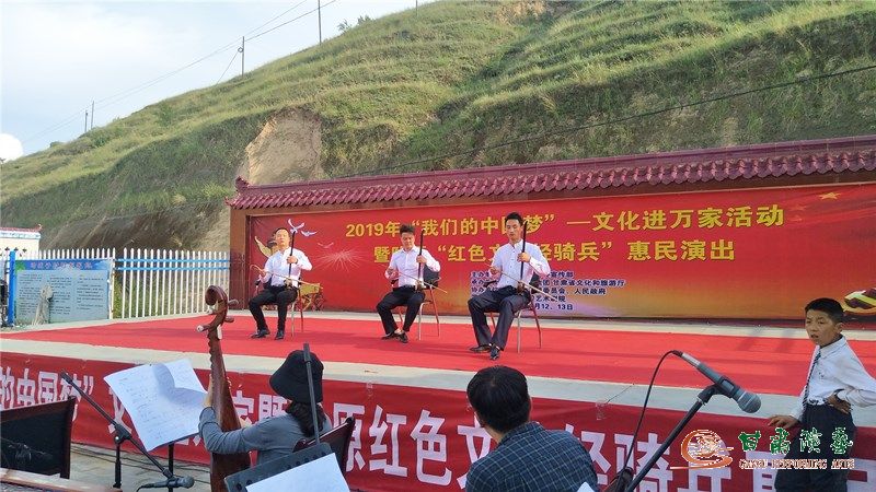 2019年7月12日、13日,甘肅演藝集團(tuán)2019“我們的中國(guó)夢(mèng)”——文化進(jìn)萬(wàn)家暨隴原“紅色文藝輕騎兵”秦腔藝術(shù)劇院小分隊(duì)在劇院黨總支書(shū)記、總經(jīng)理崔華功同志的帶領(lǐng)下,在接連完成華池縣、環(huán)縣車道鎮(zhèn)演出任務(wù)后,轉(zhuǎn)戰(zhàn)環(huán)縣毛井鎮(zhèn)為當(dāng)?shù)厝嗣袢罕妰A情呈現(xiàn)了2場(chǎng)精彩的演出。